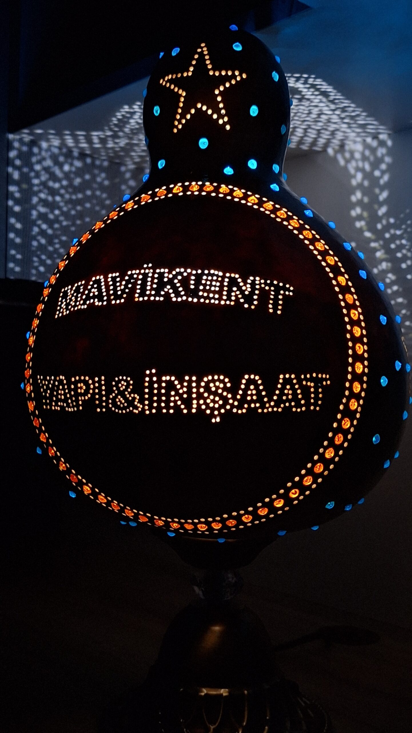 Malzeme: Kurutulmuş su kabağı, Renkli boncuk, Metal altlık, Led lamba