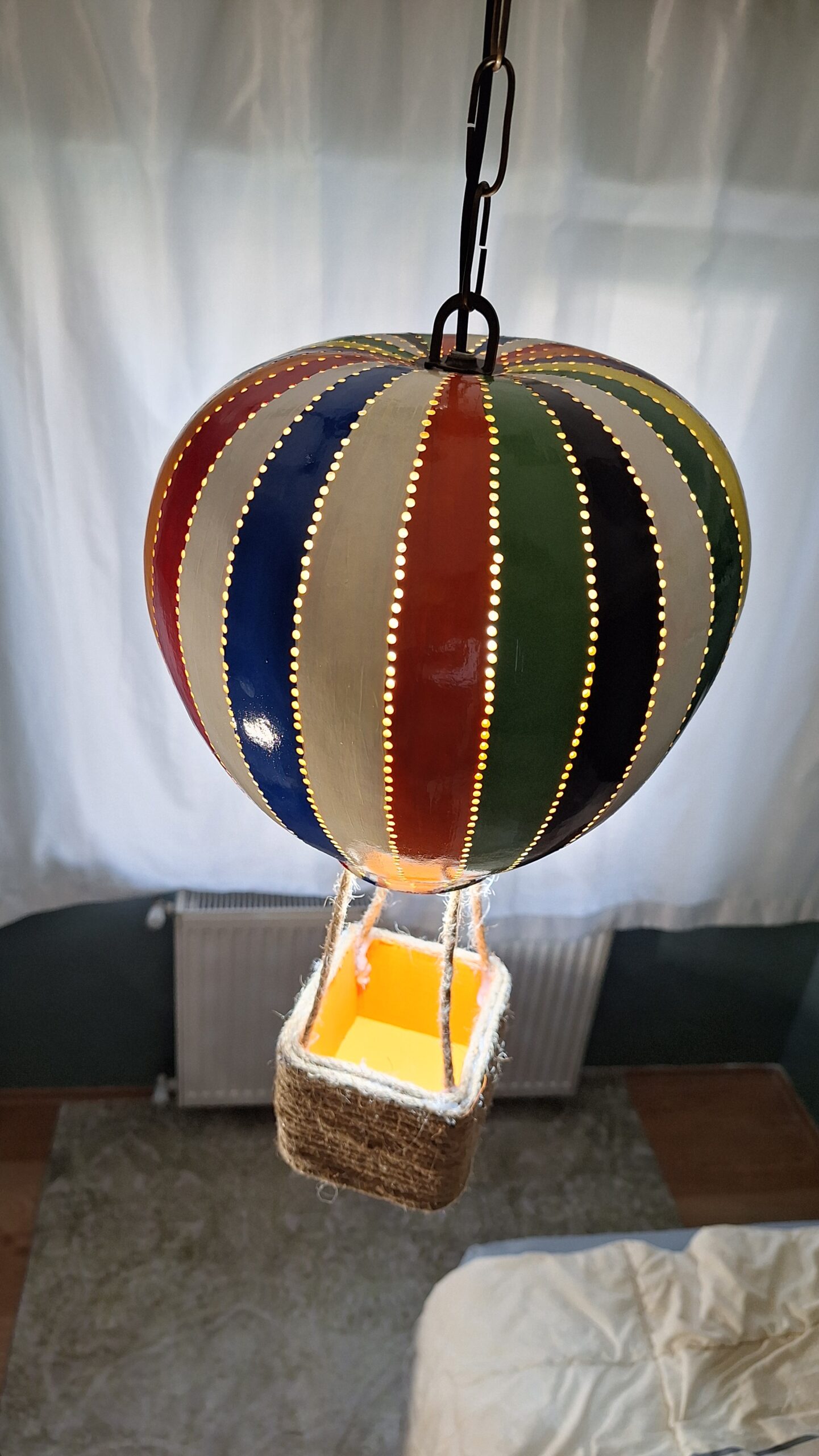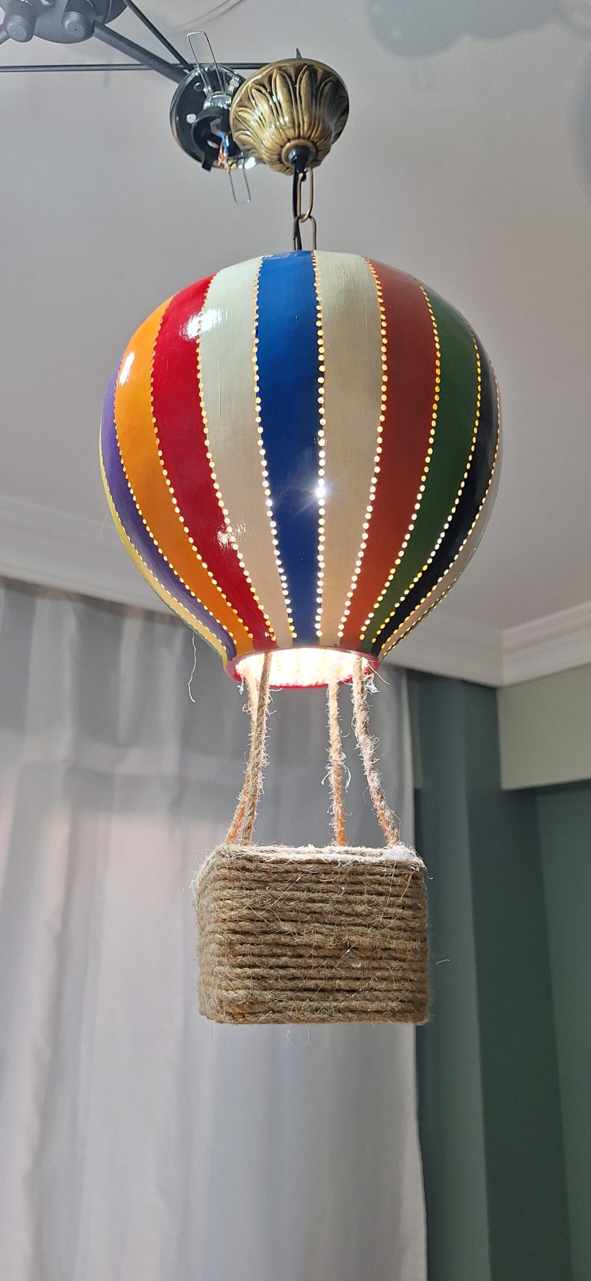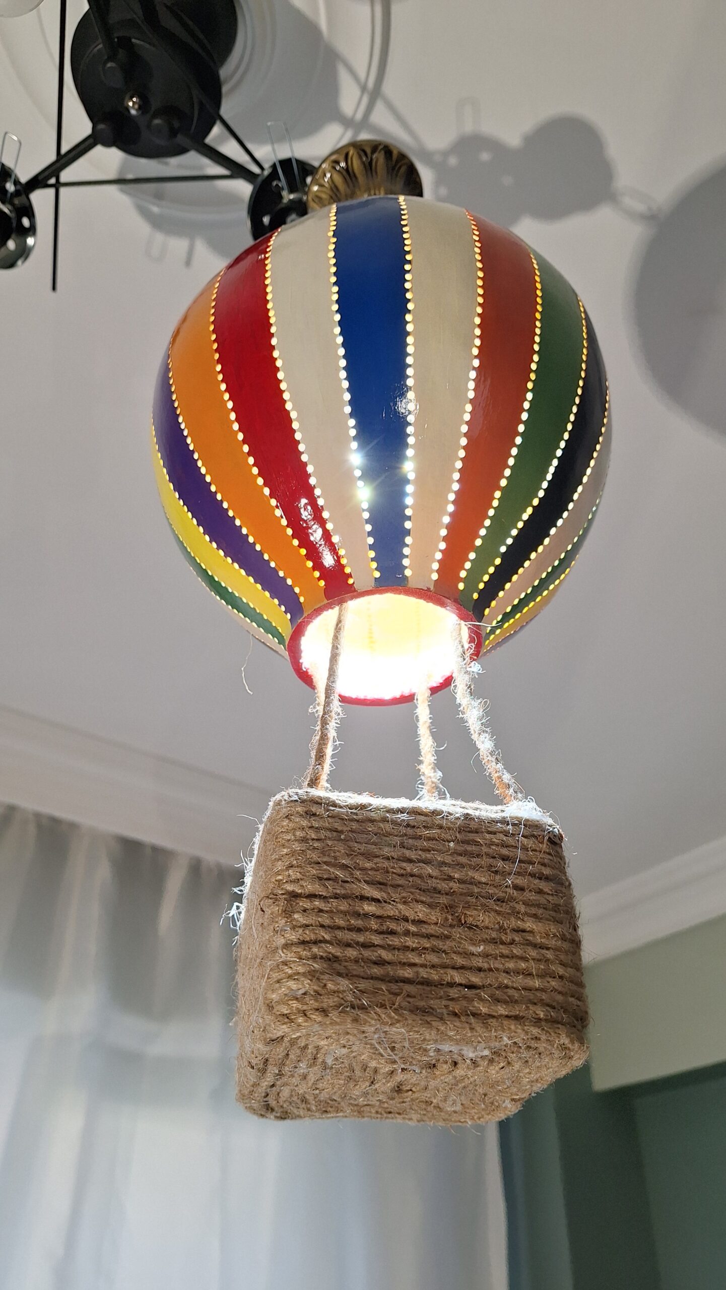 Uçan Balon – Su Kabağı Avize  Tavana as, hayal gücünü serbest bırak! “Uçan Balon”, adını sadece formundan değil, verdiği duygudan alıyor: Hafiflik, özgürlük ve renkli bir düş dünyası. Bu özel su kabağı avize, klasik aydınlatmaların çok ötesinde. Tavana asılarak mekânın tam merkezinde konumlanıyor ve ışıkla beraber odanıza mutluluk saçıyor. Kırmızı, mavi, sarı, yeşil, turuncu ve beyaz…
